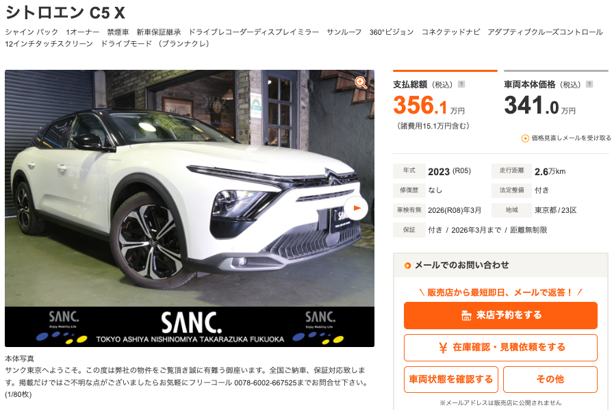 新車保証期間中のシトロエン C5 X シャイン パック 入荷!