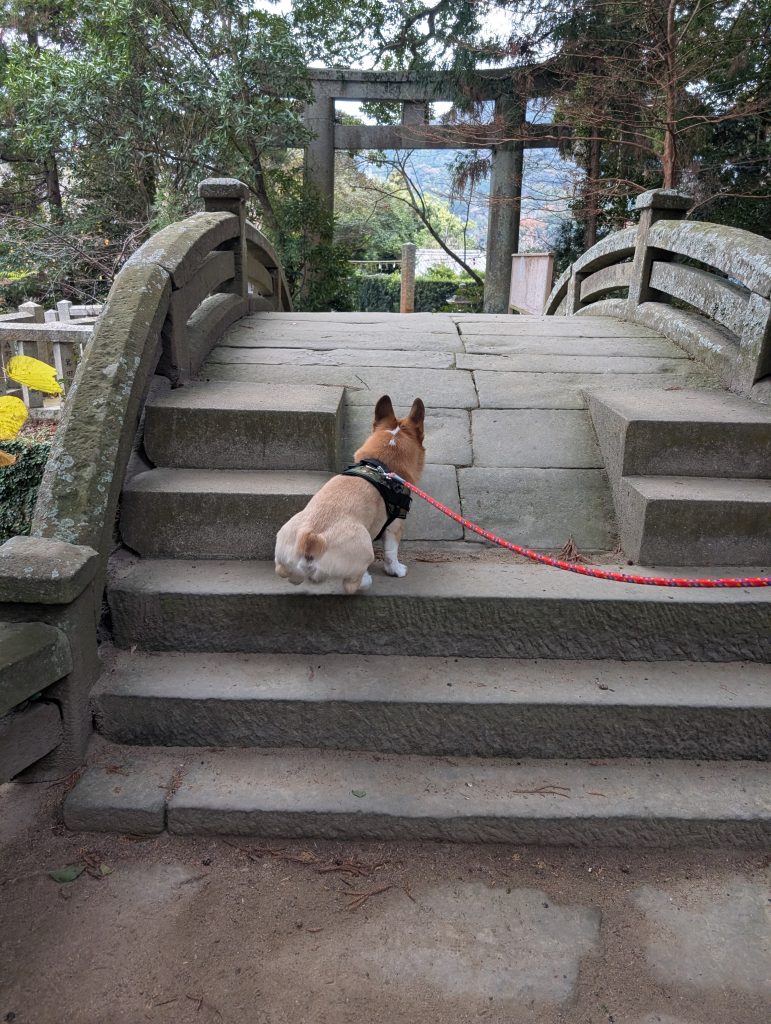 付き合わされた愛犬は、石やの参道や山道を歩いたのでお疲れ気味かと思いきや、帰りも元気に階段を上っておりました。