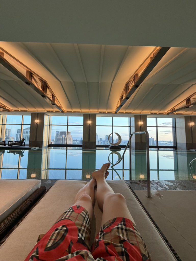 ホテル内のプールでは都会の景色を眺めながら、ゆったりとした時間を過ごせました。