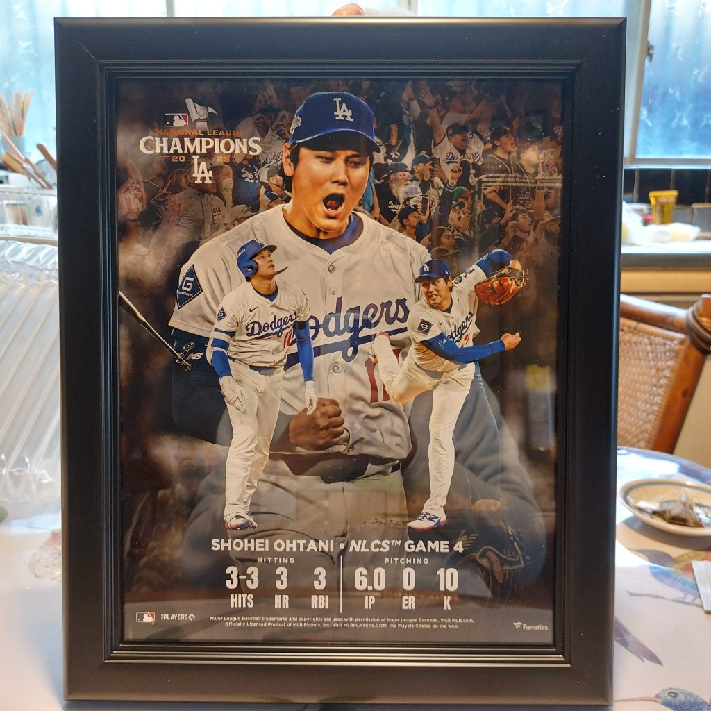 今日の大谷さんはナ・リーグ優勝決定シリーズの第4戦で、先発して10奪三振、打っては3本塁打とまさに二刀流、と言うか大谷さん一人でやってるような試合を記念した盾