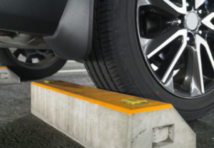 それは、車止めブロックにタイヤを押し当てたまま駐車しない事です。