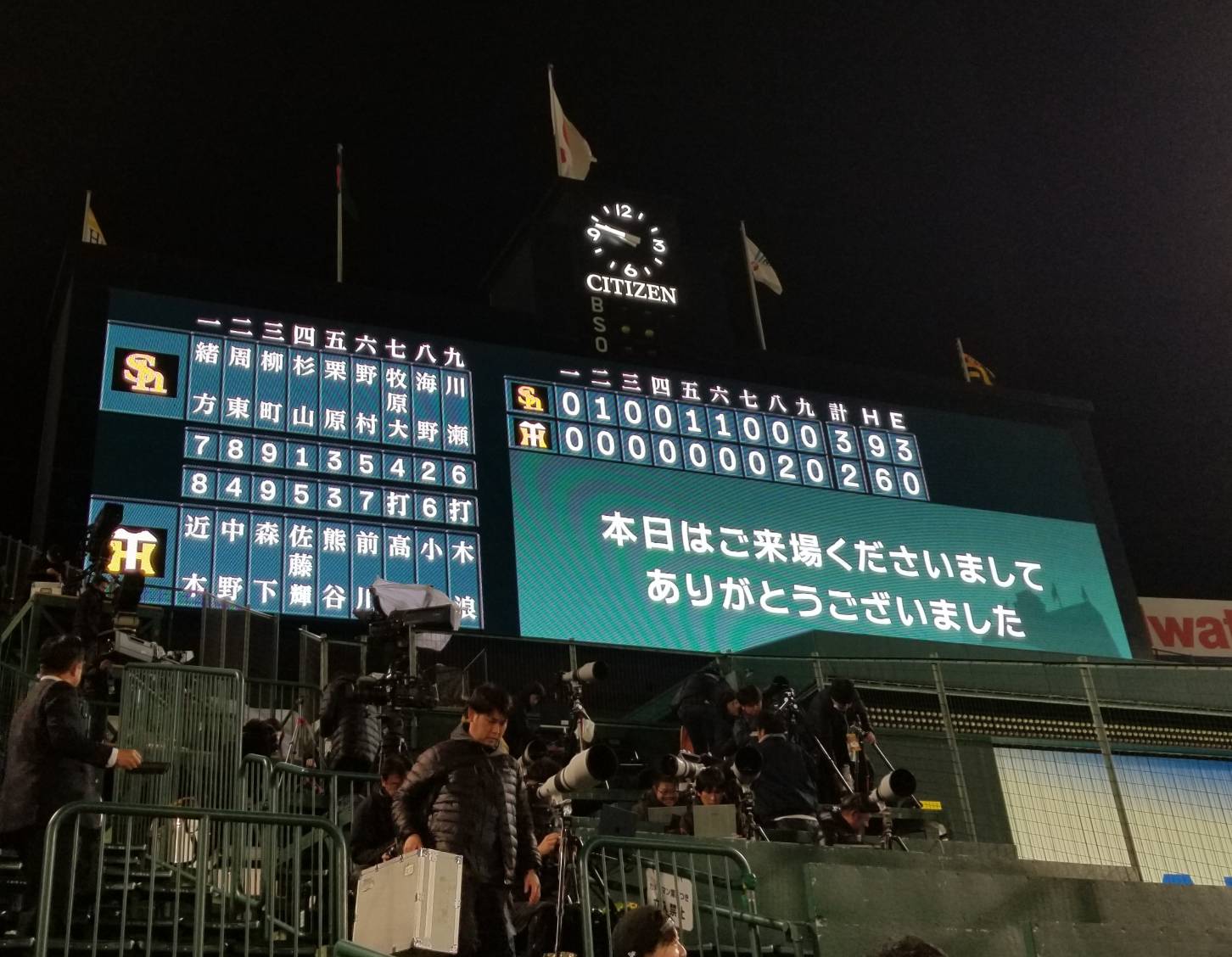 試合は残念ながら0対3とリードを許す展開。8回裏に猛虎打線が反撃を見せるも、あと一歩及ばず2対3でゲームセット…。これで1勝3敗と崖っぷちに追い込まれました。