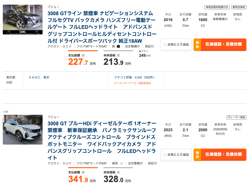 2023年 新車保証期間中のプジョー 3008 GT ブルーHDi ディーゼルターボ 入荷!
