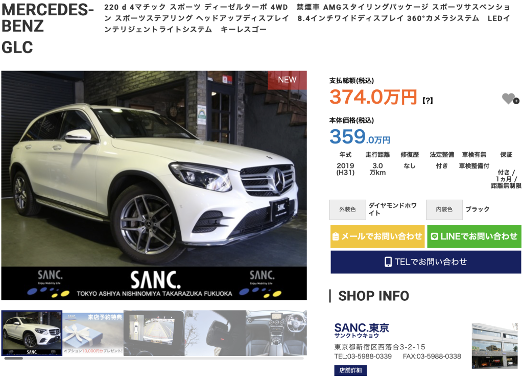 オプションカラーのダイヤモンドホワイト(M)の2019年メルセデス・ベンツ GLC220d 4マチックスポーツ入荷!