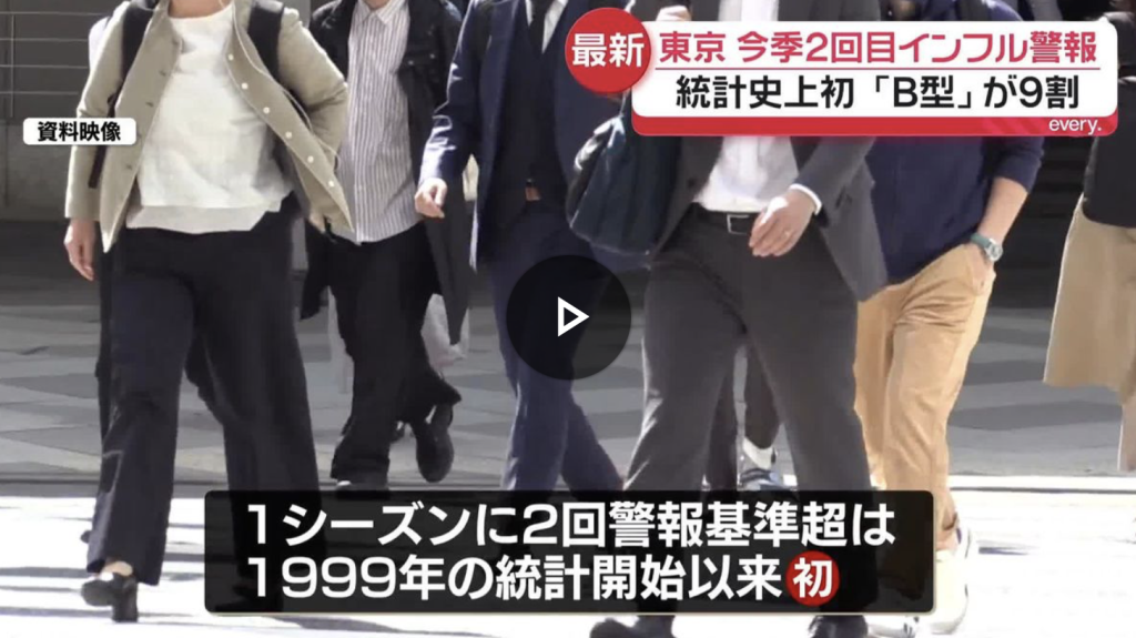都内のインフルエンザ感染者数が1月26日~2月1日の集計で警報基準を超えたそうです。